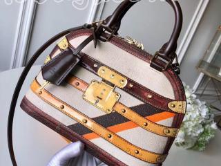 メゾンのトランク作りの伝統にオマージュを捧げたハンドバッグ「アルマ BB」。カーフレザーとトランスフォームドキャンバスを組み合わせ、ストライプ・プリントのディテールはエレガントなトロンプ・ルイユ(騙し絵)風の効果を作り出します。つや消し加工を施したゴールドカラーの金具が秋らしい色合いのパッチワークを際立たせます。トップハンドルと取外し可能なレザーストラップで複数の持ち方をお楽しみいただけます。